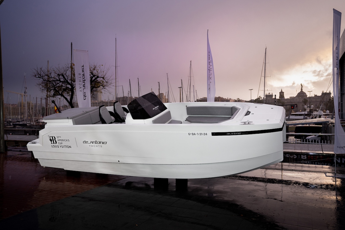 De Antonio Yachts presentó el pasado mes de abril en el recinto de la America’s Cup Experience, ubicado en el Port Vell de Barcelona, su primer barco 100% eléctrico, el E23. Un modelo sostenible, con un diseño absolutamente innovador y tecnología de vanguardia que ha sido el elegido por la organización de la Louis Vuitton 37th America’s Cup como Barco Eléctrico Oficial del evento.