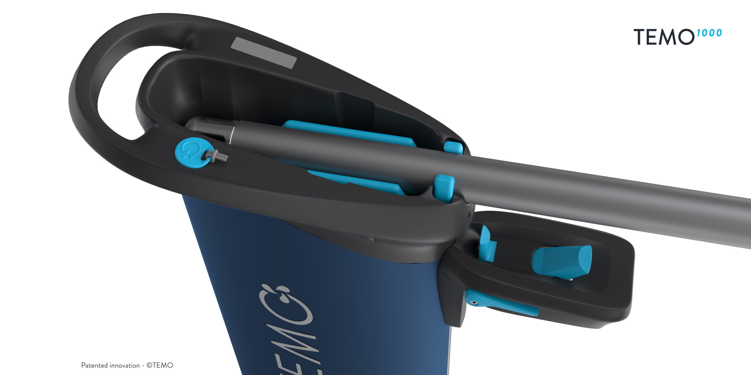 Basado en un diseño de formas aerodinámicas y muy poco peso, el Temo 1000 resulta un producto sorprendente. Además de su atractiva estética (resultado de la colaboración con el diseñador Christophe Chedal Anglay) este nuevo diseño se ha concebido en función de la portabilidad. Gracias a un marco muy delgado, es fácilmente transportable bajo el brazo, y con un asa integrada y cómoda, el