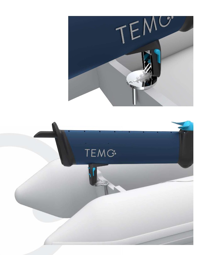 Por último, el Temo 1000 viene con un soporte de montaje o bracket multiajustable, universal, que permite adaptar el motor a la altura de cualquier espejo de popa. Este soporte también admite una rotación de 360° para instalar el motor desde el interior de la embarcación y también puede ajustar su ángulo de trimado en varios puntos para optimizar el empuje del motor.
