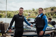 Entre la lista de participantes que navegó por las tranquilas aguas del embalse de Los Ángeles de San Rafael figuraban algunos invitados de excepción. En cabeza de ellos, el piloto, influencer y embajador de Yamaha Javier Menéndez, todo un referente de la motonáutica actual. También se unieron dos neófitos en la materia procedentes de entornos a priori tan externos al agua como el enduro y el motocross: la endurera Andrea Bautista y el campeón del mundo y de España de motocross, Carlos Campano. Ambos se lo pasaron en grande al manillar del SuperJet, descubriendo con sorpresa las enormes similitudes del manejo de la waverunner de Yamaha en relación a sus monturas habituales.