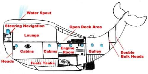 El barco ballena es comparable a un cachalote tanto por su peso como su tamaño y se construyó en Escocia en base al conocimiento previo de Tom y su experiencia en navegación a través del Océano Atlántico.
