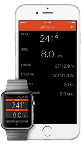 La app WX Course permite que el Apple Watch, que ya está disponible en el mercado español, muestre el rumbo, la velocidad, la latitud longitud y un compás en un display tan atractivo como sencil intuitivo sin tener que consultar el iPhone, con el que está conecta desplazarse hasta la popa para ver la instrumentación. Además, puede ajustar el uso de la batería mediante las opciones manuales de la app y el GPS del iPhone. La app esta disponible en el App Store de que se puso a la venta el reloj y pronto se lanzará una actualiza aprovechando las últimas mejoras introducidas en el sistema.