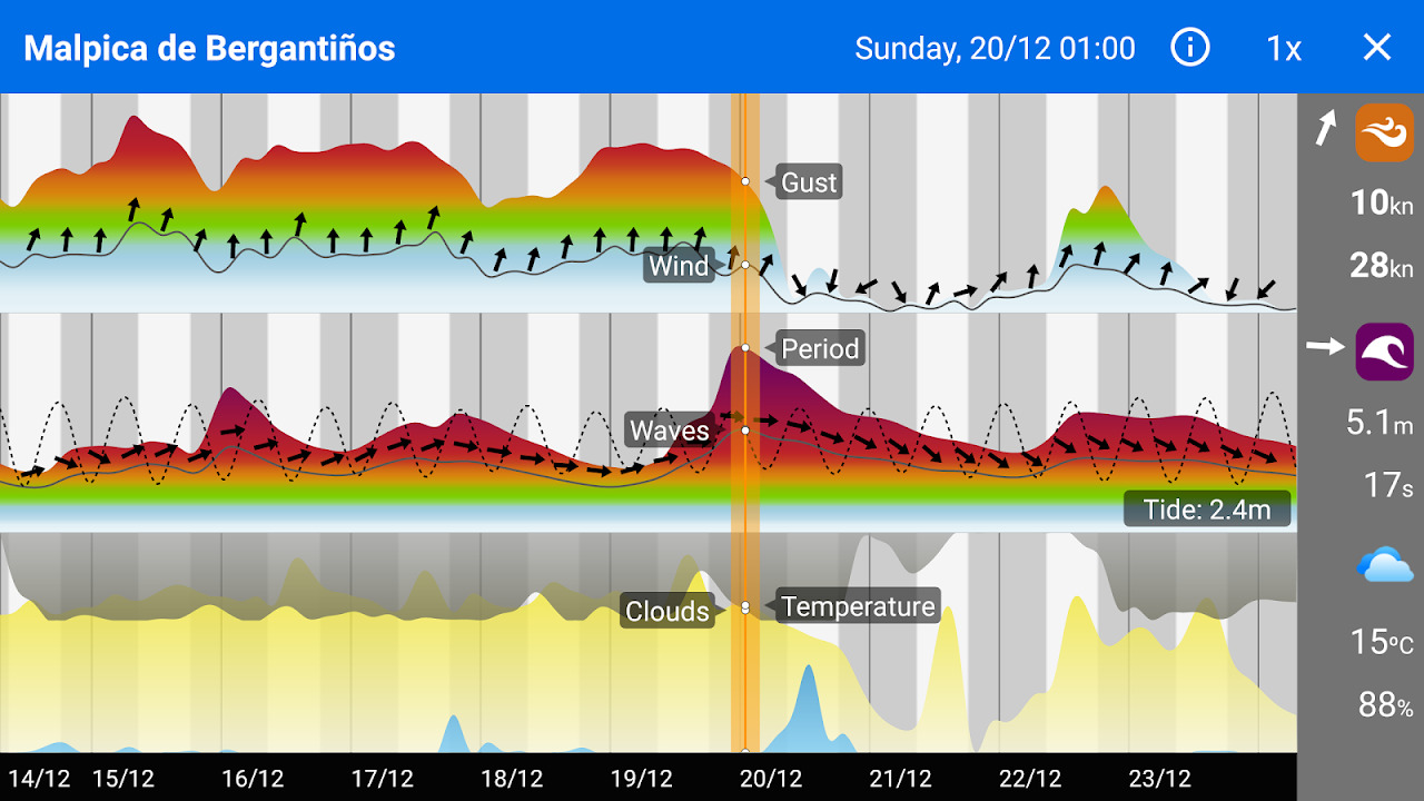 Es una de las Apps del tiempo especialmente interesantes para los practicantes de surf y deportes marítimos. Es una potente aplicación de previsiones de viento, olas, el tiempo y mareas con funciones avanzadas que permiten encontrar instantáneamente los mejores spots según las condiciones preferidas, y analizar los datos de las previsiones con un nivel de detalle con alta fiabilidad.