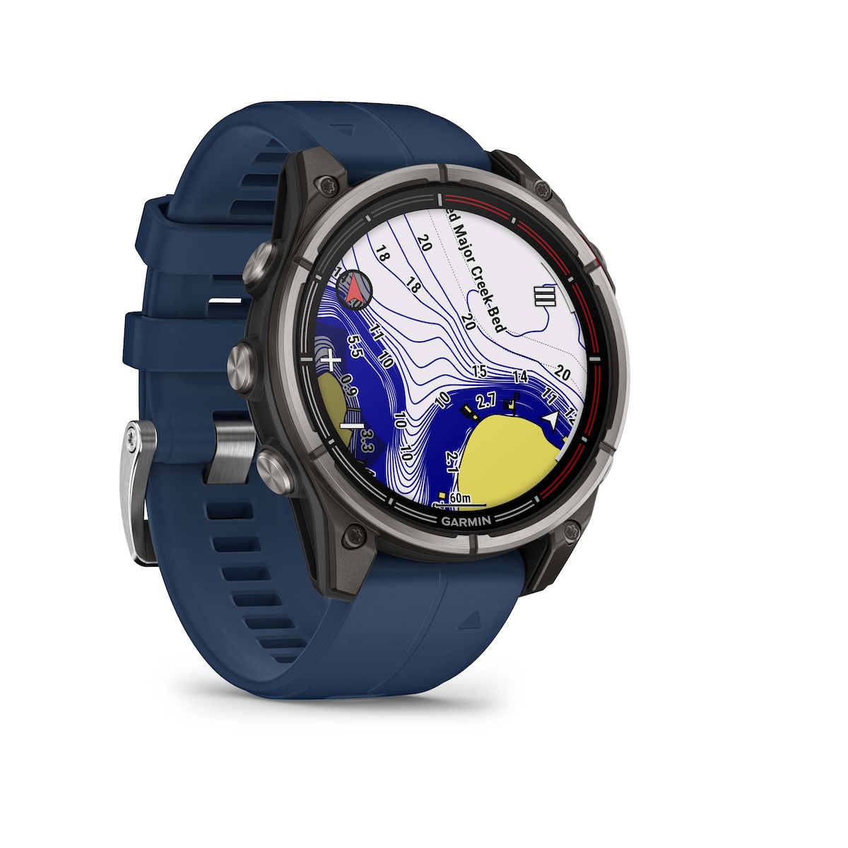 En 2025 aparece la versión Quatix 8, lógicamente con nuevas mejoras y más funciones. Las más notables de este modelo son el salto a una pantalla AMOLED, mucho más brillante, una mayor autonomía con uso continuado del GPS, soporte completo para NMEA 2000 y una integración mejorada con el ecosistema marino de Garmin.