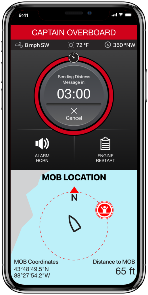 El sistema de seguridad y protección 1st Mate ofrece una gran tranquilidad y seguridad en el agua en la misma palma de tu mano a través de los terminales portátiles del sistema y tu dispositivo móvil.