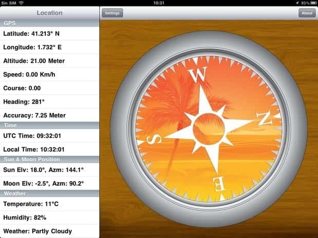 Hay muchas aplicaciones para convertir el iPhone o el iPad en un potente compás, con información recogida del GPS para darnos la posición. De las muchas que he testado, me quedo con ésta que, aunque no es gratuita, es la que mejor que he visto, resumiendo toda la información en la pantalla.
