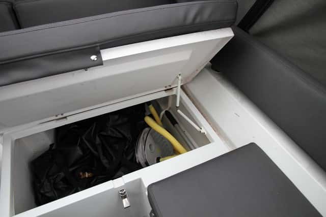 Cabina, además con buena capacidad de estiba, como en la bañera, aprovechando todos los huecos bajos los asientos, bien ventilada y con accesorios como las bolsas portaobjetos adosadas a la pared.