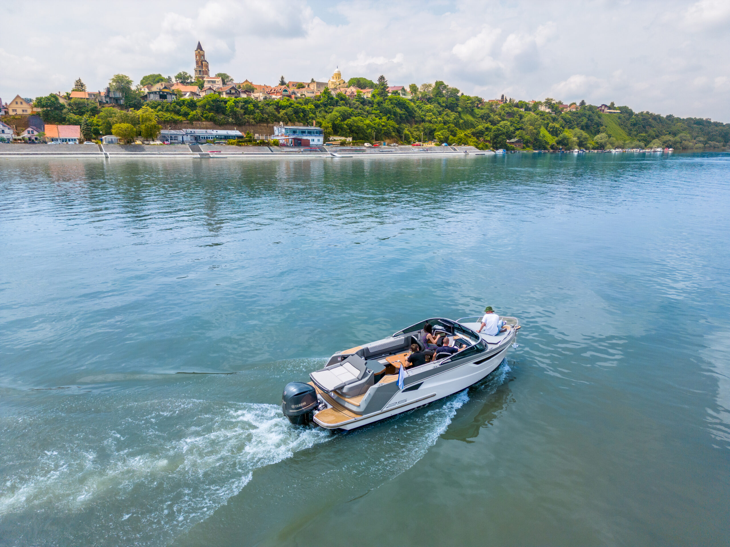 El modelo Marine 25, de 8,4 metros de eslora total y 2.100 de peso, destaca por su área de solario, aunque como opcional se puede incorporar un bimini o un techo rígido. Pero el área de proa se puede cubrir con cojines hasta 1,70 metros y un sistema que permite elevar la cabecera que permite tomar el sol sin dejar de ver el paisaje. El nivel de acabado y los detalles de la tapicería son muy elevados y mezclan en estilo detalles modernos y de época. La iluminación indirecta led proporciona una atmosfera agradable que permite estirar la jornada más allá de la puesta de sol. Admite ocho personas a bordo y puede motorizarse con un máximo de 220 kW de potencia.