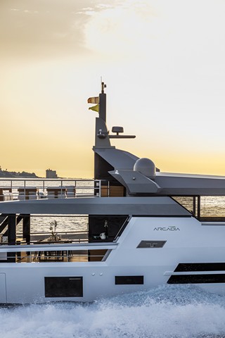 Desde sus inicio, Arcadia se presentó al mercado de los superyates de más de 80 pies con un concepto entonces innovador, no solo arquitectónicamente en el diseño de las áreas de la superestructura,  como hemos visto al principio de este artículo, sino también en cuanto a las formas de uso de un superyate apostando por una forma diferente de disfrutar del mar y la navegación en la que la velocidad y las prisas pasan a un segundo plano, en beneficio del confort, la tranquilidad y el relax. Inevitablemente este enfoque diferente de la manera de entender la navegación lleva implícito el ahorro de combustible, la autonomía energética y por tanto un a ahorrar mucho combustible y, por lo tanto una considerable reducción del impacto ambiental.