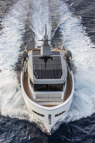 Los paneles solares integrados en la parte superior del yate reducen el uso de generadores.