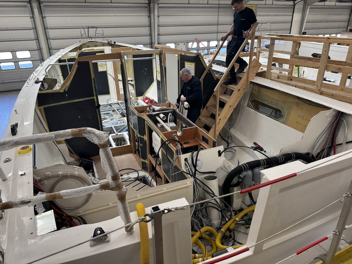 También nos ha sorprendido el buen ambiente de trabajo y las facilidades que tienen la cincuentena de personas que forman parte del staff. Tener la posibilidad de ver los barcos en diferentes etapas de construcción nos ha permitido analizar espacios que habitualmente no vemos. Por ejemplo, los refuerzos de los cadenotes y su conexión con la rejilla que recorre toda la sentina, y que da rigidez estructural al barco. También destaca la dedicación y el orden con el que realizan las diferentes instalaciones de a bordo: las instalaciones de agua, combustible y, principalmente, la instalación eléctrica, que está codificada de principio a fin, con sus diferentes referencias expresadas en el manual del barco.