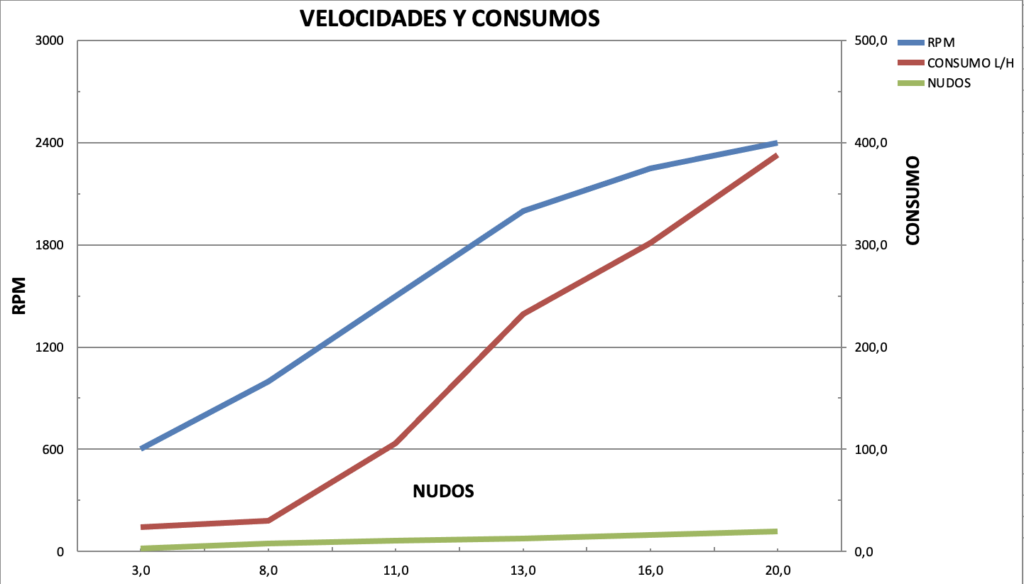 Autonomía: En torno a unas 242 millas a régimen máximo y unas 287 millas a régimen de crucero de 23,4 nudos.