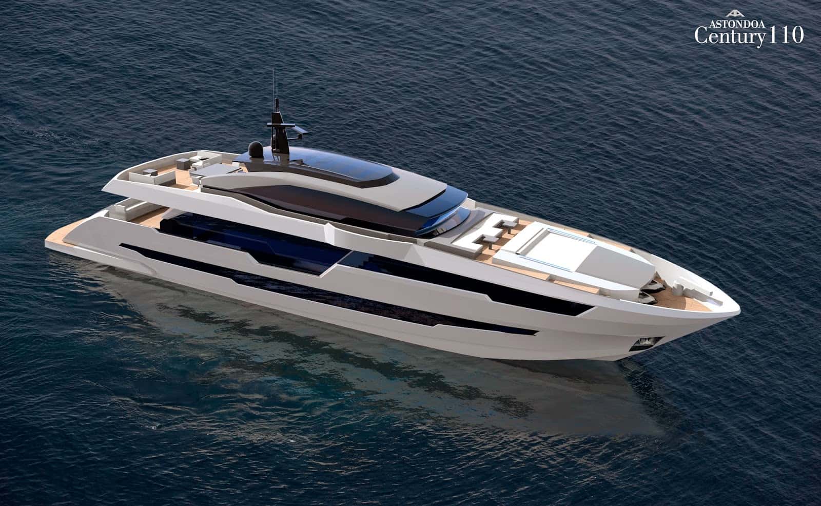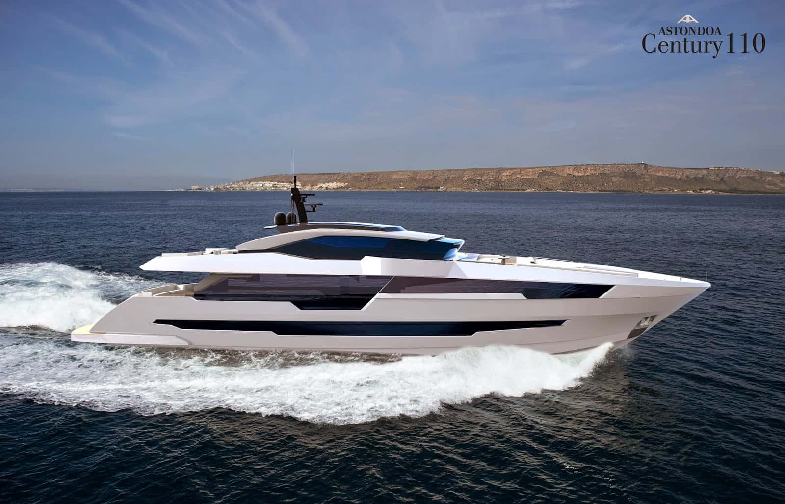 El primero de los modelos de esta nueva línea es el Astondoa Century 110, se trata de un yate de 110 pies con flybridge, que hace honor a la tradición ya conocida por todos de grandes y buenos cascos con una optima navegación y aderezado con un diseño exterior actual y moderno que junto a una decoración e interiorismo personalizada al cien por cien al gusto del armador.
