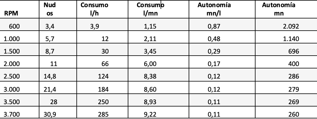 Velocidad máxima: 30,9 nudos a 3.700 rpm.