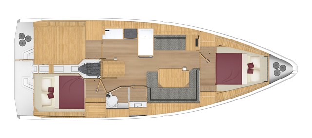 Por lo demás, la idea tras el diseño es ofrecer un crucero puro, con una maniobra sin complicaciones, un aparejo vélico polivalente que pueda adaptarse a los gustos de cada propietario, y una cubierta cómoda y espaciosa para hacer vida al aire libre.