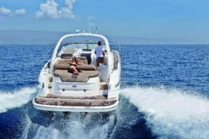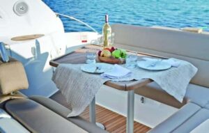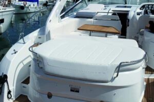 Los dos Volvo Penta de 300 Hp permiten superar los 35 nudos de punta, o mantener un régimen de crucero de unos 27 nudos con todo confort. Una potencia adecuada y razonablemente económica en consumo