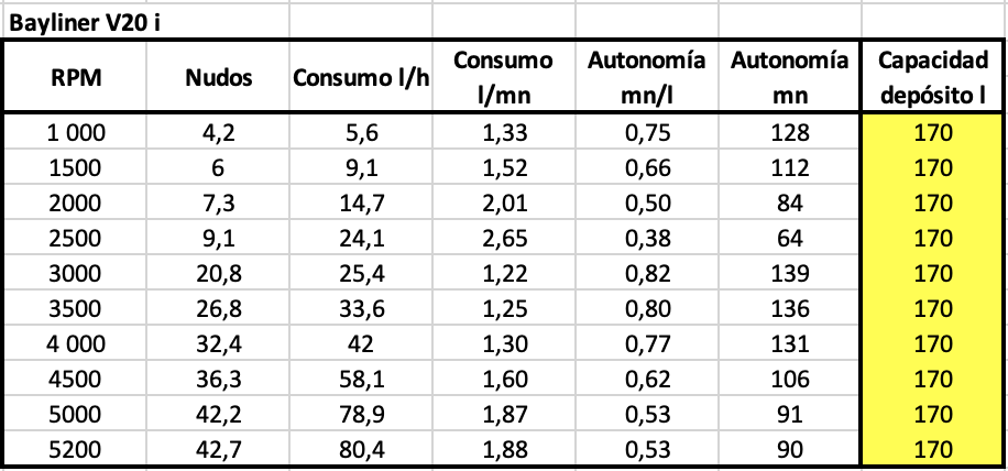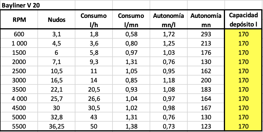 Con estos registros, la velocidad de crucero a 3.000 rpm se mantiene en 20,8 nudos con un consumo de 25 l/h, más similar al consumo de su otra versión.