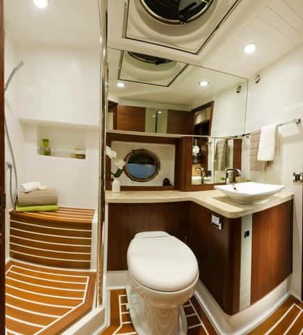 La arquitectura interior se basa en dos premisas: la luz y el espacio. La Belize 54 está hecha para vivir a bordo, no es de mírame y no me toques, como ocurre con otros barcos de delicada moqueta blanca. La madera y el acero inoxidable predominan en todos los interiores, salón, cocina, aseos y cabinas.