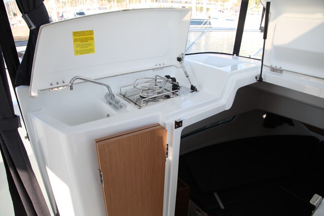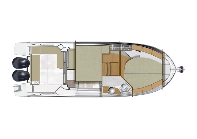 Un crucero familiar que potencia tanto la vida a bordo en el exterior con una bañera polivalente, con una dinete convertible en solárium y numerosos asientos; como la estancia en el interior, ya sea en el salón parea cuatro, convertible en litera doble, o en los dos camarotes de la zona de noche.