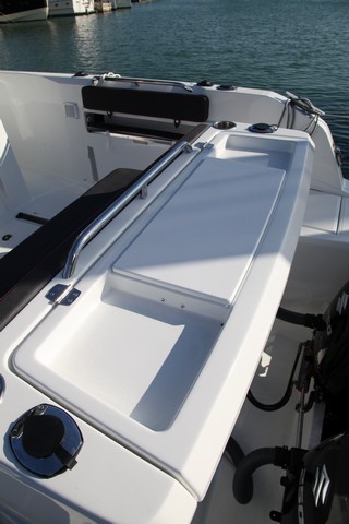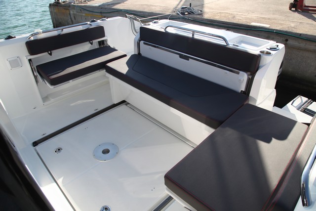 La bañera de la Barracuda, obviamente, está perfectamente preparada para la pesca, con un vivero en popa, agua a presión y un módulo para preparar el pescado, con bancos laterales plegables, y pasos laterales tipo walkaround.