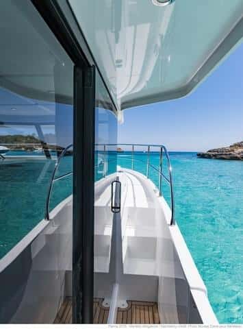 Hay que recordar que le astillero ofrece el Pack Electronic sale por 10.110 euros, e incluye, entre otros, la radio VHF piloto y pantalla multifunción completa. Y también el acabado Lounge por 13.680, con molinete de 1000 vatios baterías de servicio hélice de proa preinstalación tv antena satélite, flaps eléctricos, convertidor 12/220 y pantalla Raymarine e95 con sonda.