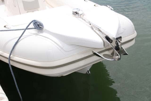 La proa dispone de robusta una pieza de fibra, con las cornamusas, que sostiene la roldana e integrar el molinete de fondeo.