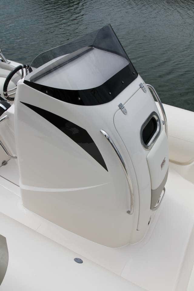 El diseño de la consola central refuerza el carácter deportivo de la 80 Ocean. Los pasamanos son detalles que se agradecen en esta semirrígida.