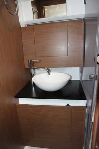 En general pocos barcos de programa daycruiser ofrecen tanto en un camarote de estas dimensiones, que nos recuerda en parte el estilo funcional de los veleros de Jeanneau: no se ha colocado nada en vano, y cada rincón, detalle y accesorio cumple su misión.