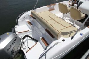 Además en este barco se da el caso de que su importador, Mica Nautic, mejora el barco que le llega de fábrica completando algunos detalles y ofreciendo un pack personalizado que deja la embarcación equipada y a punto para navegar. A esto se añade el pack con el Honda BF150, que además de suponer un sustancioso ahorro, es una potencia que se adapta perfectamente a este modelo.