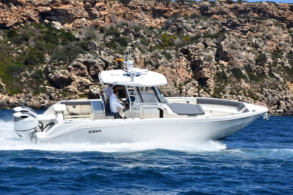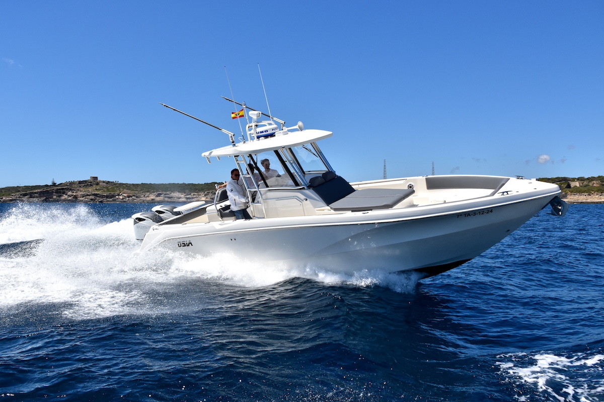 La Capelli Osia 315, con sus 9,55 metros de eslora, ofrece una navegación ágil y deportiva capaz de mantener la proa seca en casi cualquier tipo de condición. Equipada con dos motores Suzuki de 300 Hp cada uno, es capaz de superar los 40 nudos con facilidad y eficiencia, para ofrecer largas jornadas de pesca o dirigirnos rápidamente a cualquier caladero o fondeadero.