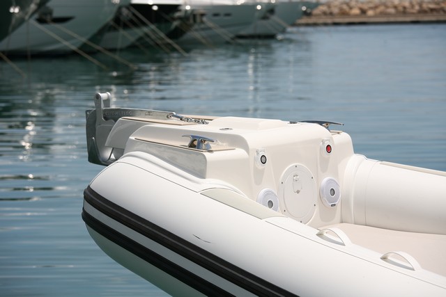 Un único interruptor de power-trim está situado en la palanca de la izquierda, de modo que el barco se trima con el pulgar de la mano derecha. La unidad probada montaba la hélice de proa (opcional) con la finalidad de facilitar las maniobras en espacios muy reducidos.