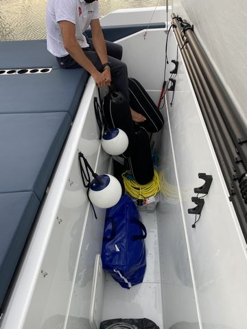 Otra idea destacable en este barco: el gran espacio para estibar el anexo verticalmente.