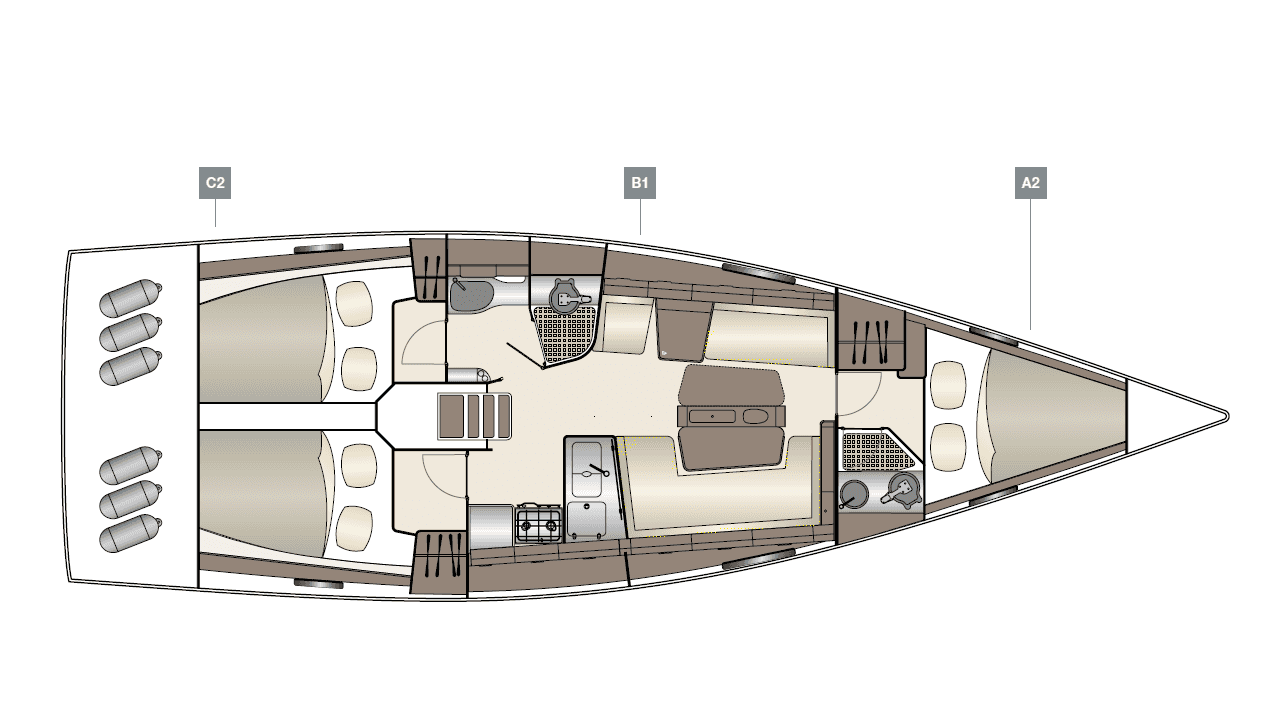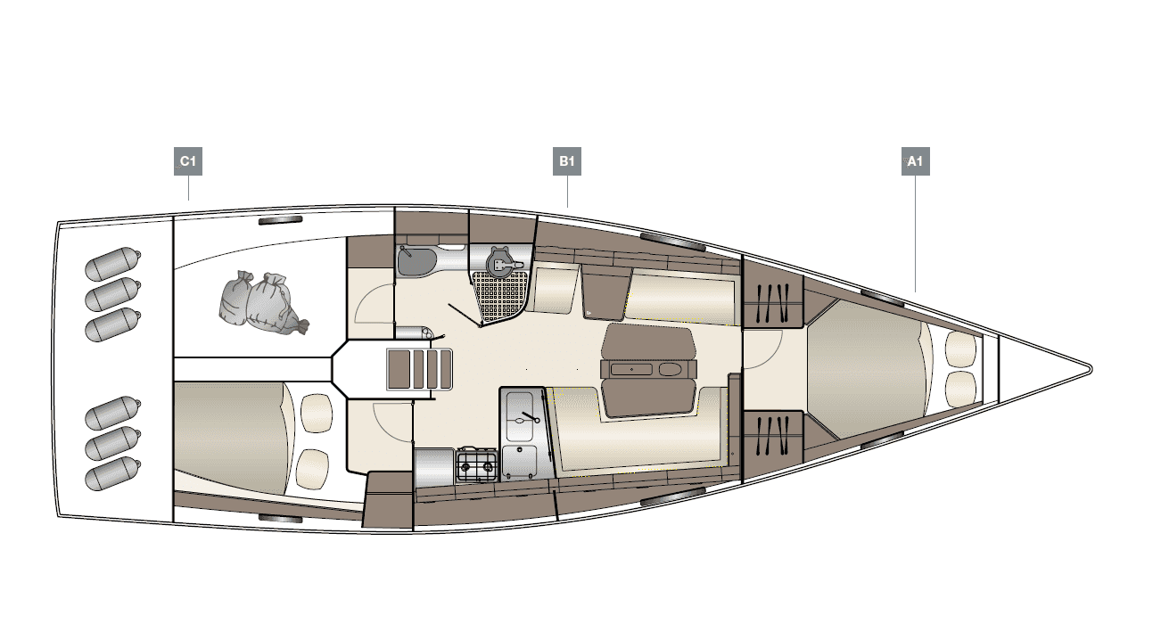 Las distintas versiones de equipamiento que permiten convertir la cómoda versión de crucero mediante distintas opciones en un barco de regata competitivo subrayan el objetivo de placer de navegación.