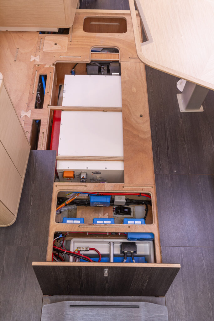 Las ventajas de elegir esta opción son claras: más confort, especialmente en puerto y fondeos al desaparecer el ruido, las vibraciones y el olor de un motor de combustión. En caso necesario, el grupo electrógeno puede recargar las baterías en una hora de funcionamiento de forma que se dispone de energía eléctrica para toda una jornada.