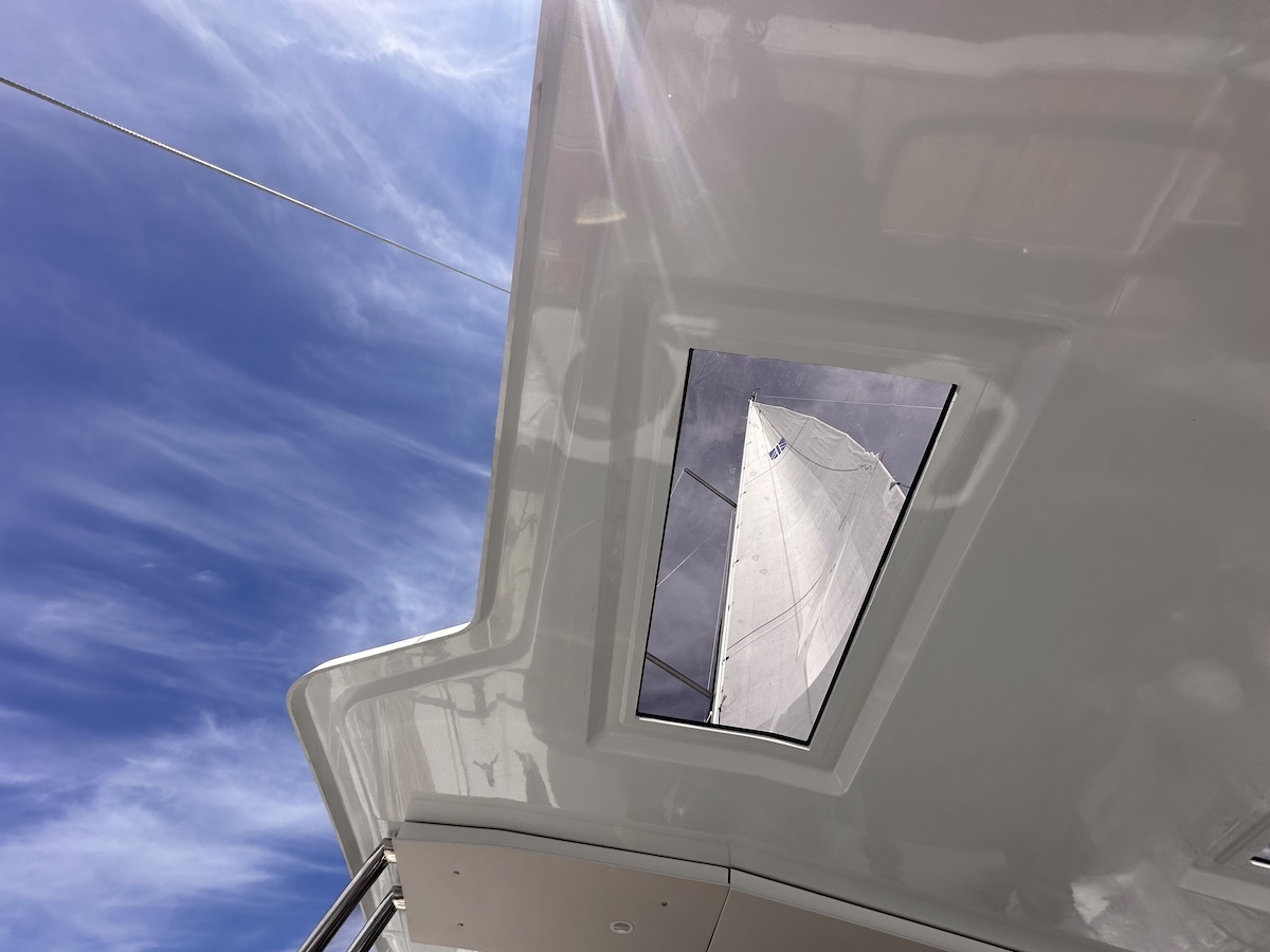 La luz natural está realmente presente en este Dufour 48. Las ventanas panorámicas del tejadillo, que se extienden a lo largo de toda su longitud, bañan continuamente el salón interior y la cocina con luz natural, creando un ambiente cálido y acogedor.