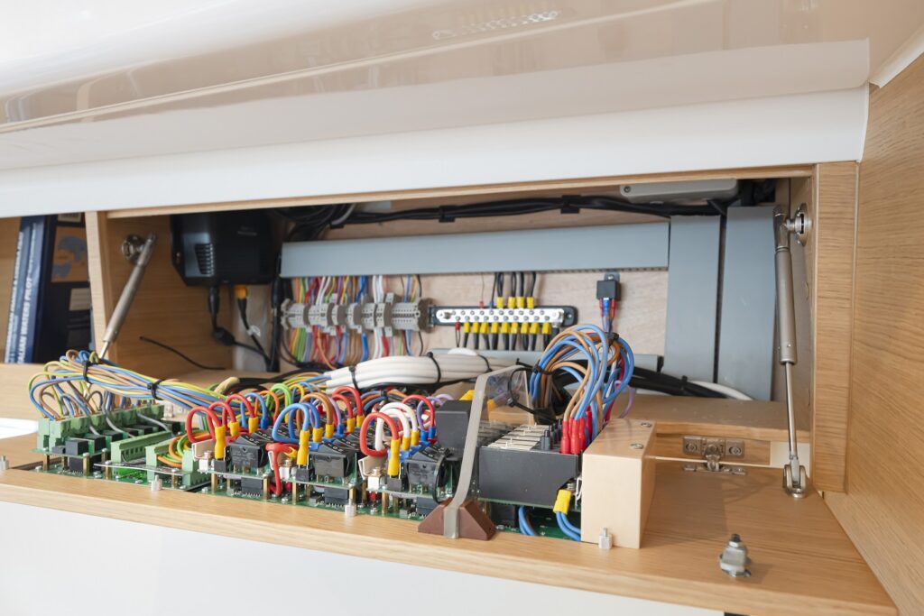 La configuración estándar de la jarcia se basa en un palo de aluminio con dos pisos de crucetas retrasadas, jarcia discontinua de barra de acero inoxidable y un backstay con dos hidráulicos. Por supuesto que cabe la posibilidad, como opcional, de un mástil de fibra de carbono. Como comentábamos al inicio, la configuración de los timones es de dos palas y con la quilla de forma T estándar y el calado es de 2,80 m.