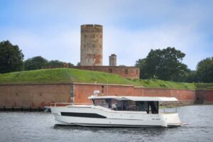 Astillero nacional que opta al más preciado galardón europeo por méritos propios. Un diseño elegante combinado con una buena carena y una bañera versátil. Equipa fuerabordas que quedan escondidos bajo la gran superficie del solárium de popa.