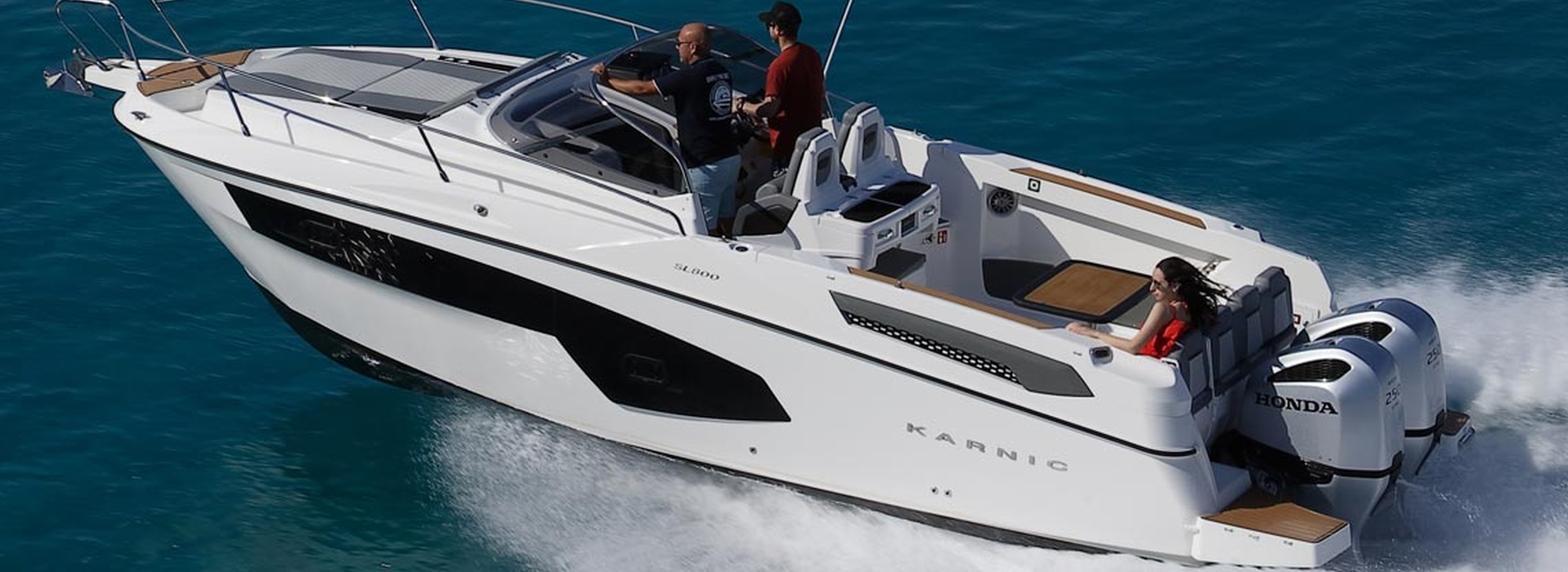 Este constructor chipriota es especialista en obtener los mejores rendimientos de espacio y confort en las bañeras de sus barcos. En la esta SL 800 logra amplios interiores y una amplia bañera bien protegida. Excelente carena que, equipada con dos Verado de 250 Hp supera los 48 nudos de punta.