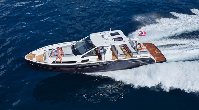 Barco noruego ideal para el crucero familiar. Un diseño dotado de infinidad de detalles y soluciones inteligentes. Cabina para cuatro y una bañera muy cómoda equipada con cocina y amplia plataforma de baño, además de una dinete para ocho personas. Supera los 40 nudos con dos Volvo Penta de 300 Hp.