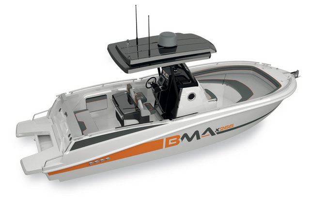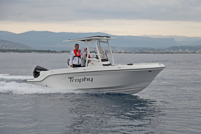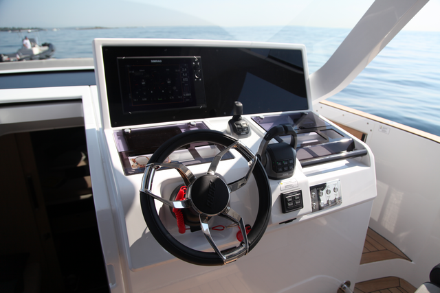 Al igual que con los dos ya diseños existentes de esta marca, el cliente puede optar por un T top para cubrir el área central de la bañera. Cuenta, además, con una pequeña cabina equipada con un inodoro y una litera para acomodar a dos personas. Dependiendo de la motorización (un fueraborda de 100 Hp hasta 175 Hp), puede alcanzar velocidades entre los 32 y los 45 nudos