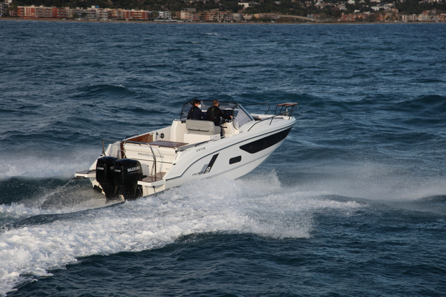 En este mismo número 53 de N&Y Magazine aparece la prueba de esta Bénéteau Flyer 9 Sundeck, un barco sin duda llamativo e innovador por la adopción de varias ideas bien combinadas en esta eslora. Tal como remarcamos en la prueba, es un diseño retoma el estilo más auténtico de la gama Flyer (como la 8, 7 y 10) adoptando un diseño más consensuado entre los programas deportivo y familiar. Es un barco de perfil estilizado, con un francobordo más bajo que en los modelos anteriores, pero con una bañera más protegida. Como las últimas Flyer, este modelo adopta la carena exclusiva de Bénéteau AisStep2, con dos steps transversales y un gran volumen en la proa. Una fiera navegando por encima de los 41 nudos con dos Suzuki de 250 Hp.