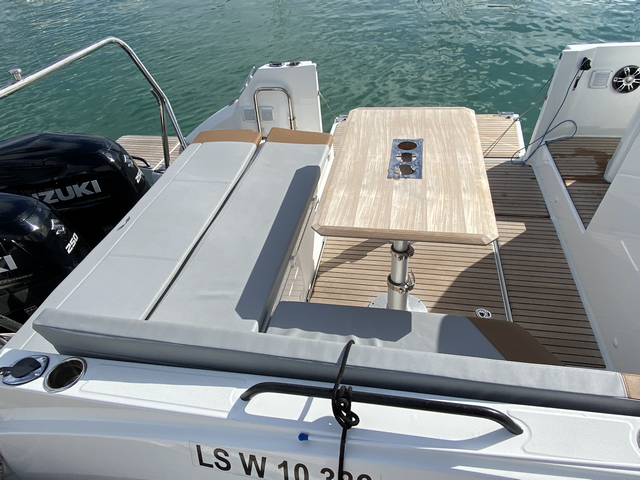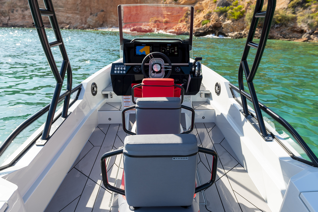 Esta eslora de casi seis metros se presentó por el astillero como un innovador escooter de mar. Una embarcación deportiva basada en un diseño funcional que puede adoptar asientos tipo jockey o tradicionales, configurables para mejorar la polivalencia de uso en la bañera.