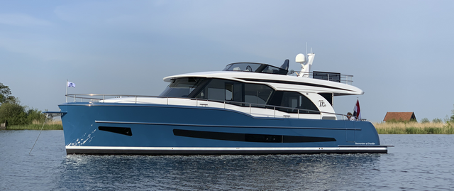 El astillero anuncia este modelo como “la eficiencia energética en su máxima expresión”. Es un barco con un notable rendimiento hidrodinámico, gran autonomía y, en consecuencia, con destacable ahorro de combustible. Ello es posible a su especial diseño de carena denominado Long Thin Hull, que garantiza una navegación confortable. Puede alcanzar hasta los 20 nudos de máxima; pero a régimen e crucero de 12 a 15 nudos, es capaz de ofrecer una autonomía de más de 400 millas. Un diseño de interiores muy práctico, hecho para permanecer en largas navegaciones y todo dentro de un estilo muy personal e innovador.