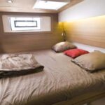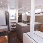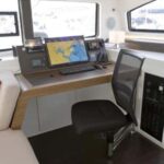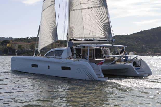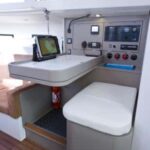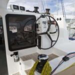 De hecho, aunque tiene casi 60 pies, resulta comparable a catamaranes casi tres metros más cortos. Lo que podría parecer un defecto es en realidad virtud, pues produce velocidades divertidas y placer al timón. Para ello cuenta con dos cañas de carbono colocadas sobre las cubirertas.