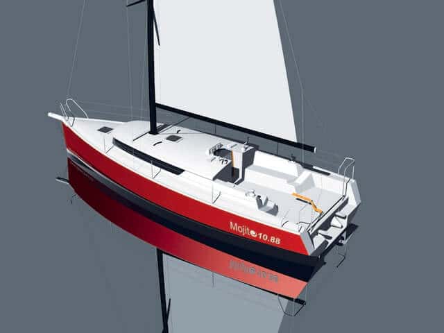 El Mojito 10.88 combina un casco muy ligero y con unas formas muy modernas con un diseño de cubierta con caseta elevada. Es un casco creado para proporcionar buenas sensaciones con portantes gracias a su delfinera y su enorme spi asimétrico, toda vez que permite vararlo en seco en zonas de marea gracias a su quilla elevable. También es el único en su eslora que ofrece espacio de garaje abierto bajo la bañera para un pequeño auxiliar.