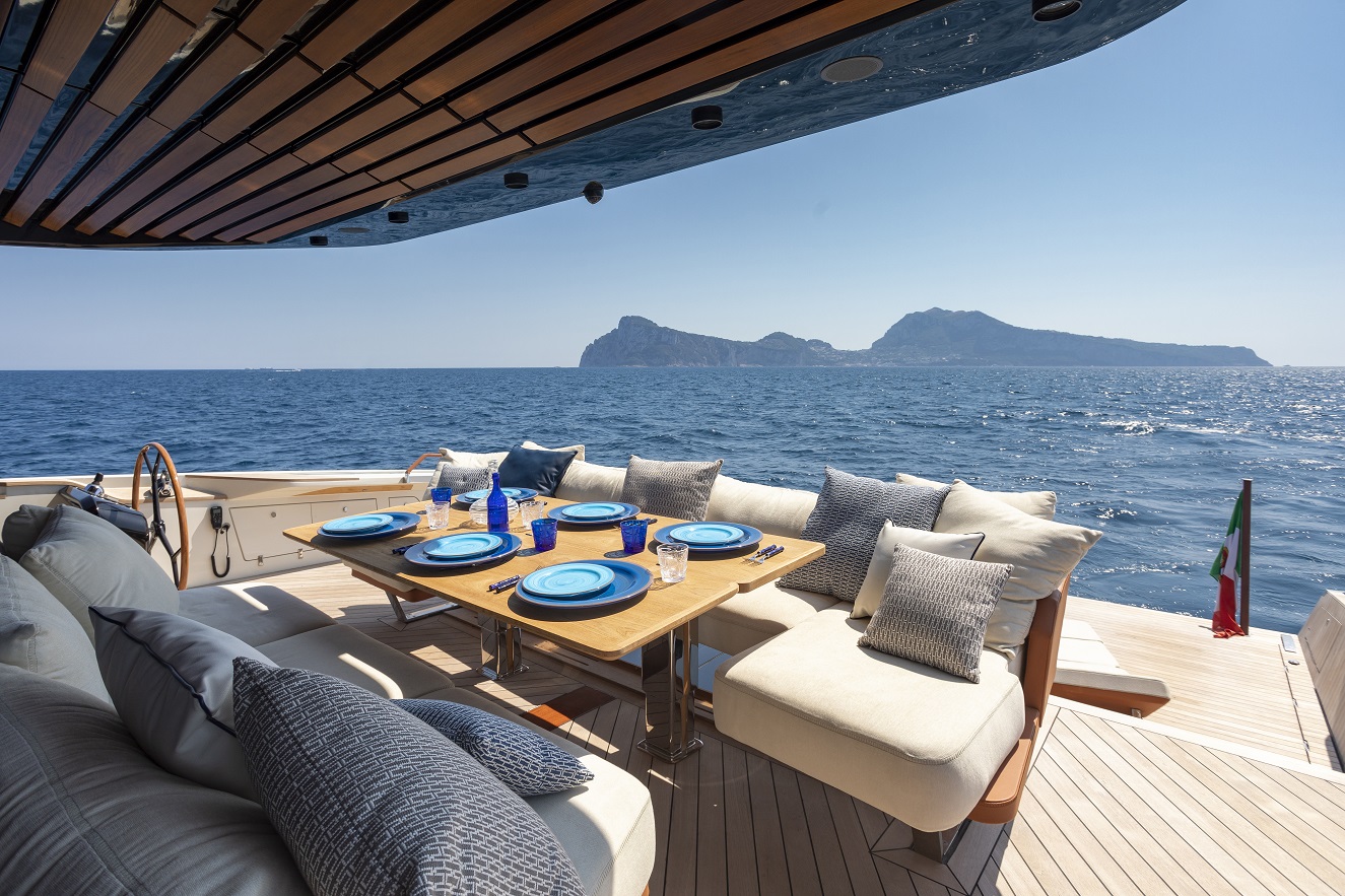“Por lo general, los propietarios de yates a motor comienzan sus vacaciones cuando llegan a su destino, ya sea fondeados frente a la costa o en el puerto, mientras que los entusiastas de la vela comienzan sus vacaciones tan pronto como suben a bordo. El Evo V8 combina la velocidad de un yate a motor con la comodidad y el relax de navegar a vela” –explica Valerio Rivellini.