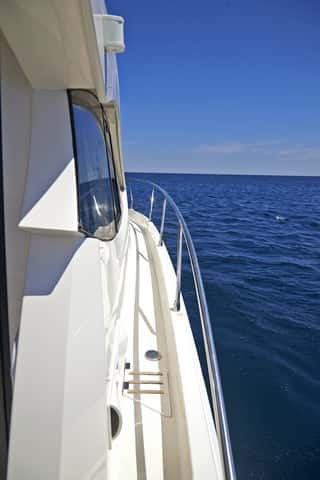 La versión HT se basa en una carena totalmente comprobada en la anterior flybridge. Es, por lo tanto un barco con el centro de gravedad más abajo, y en consecuencia algo más estable. No obstante, con la motorización fueraborda de los dos Yamaha de 200 Hp este barco va sobrado de potencia por cuanto con el gas a fondo no soporta su estabilidad direccional. Son demasiados caballos. Navegamos con unas condiciones más que adversas, con marejadilla y viento, para comprobar las prestaciones de la 300 HT.