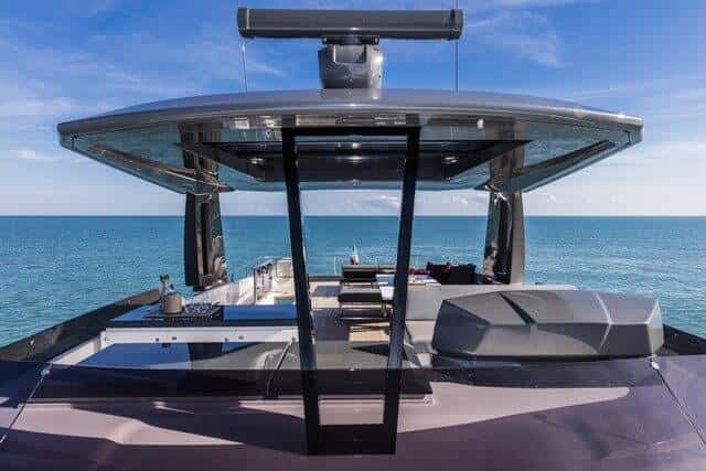 El techo rígido protege el flybridge y le confiere personalidad al diseño.