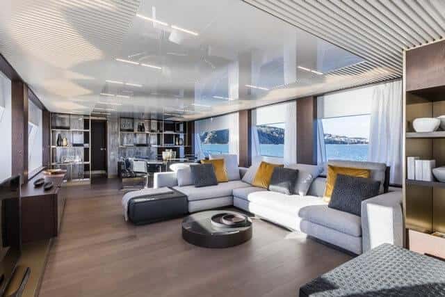 La decoración, elegida por el departamento de ingeniería del grupo codo con codo con expertos internacionales en tendencias, rompe con los estándares convencionales a los que estamos habituados en lo que respecta a mobiliario a bordo de un superyate.