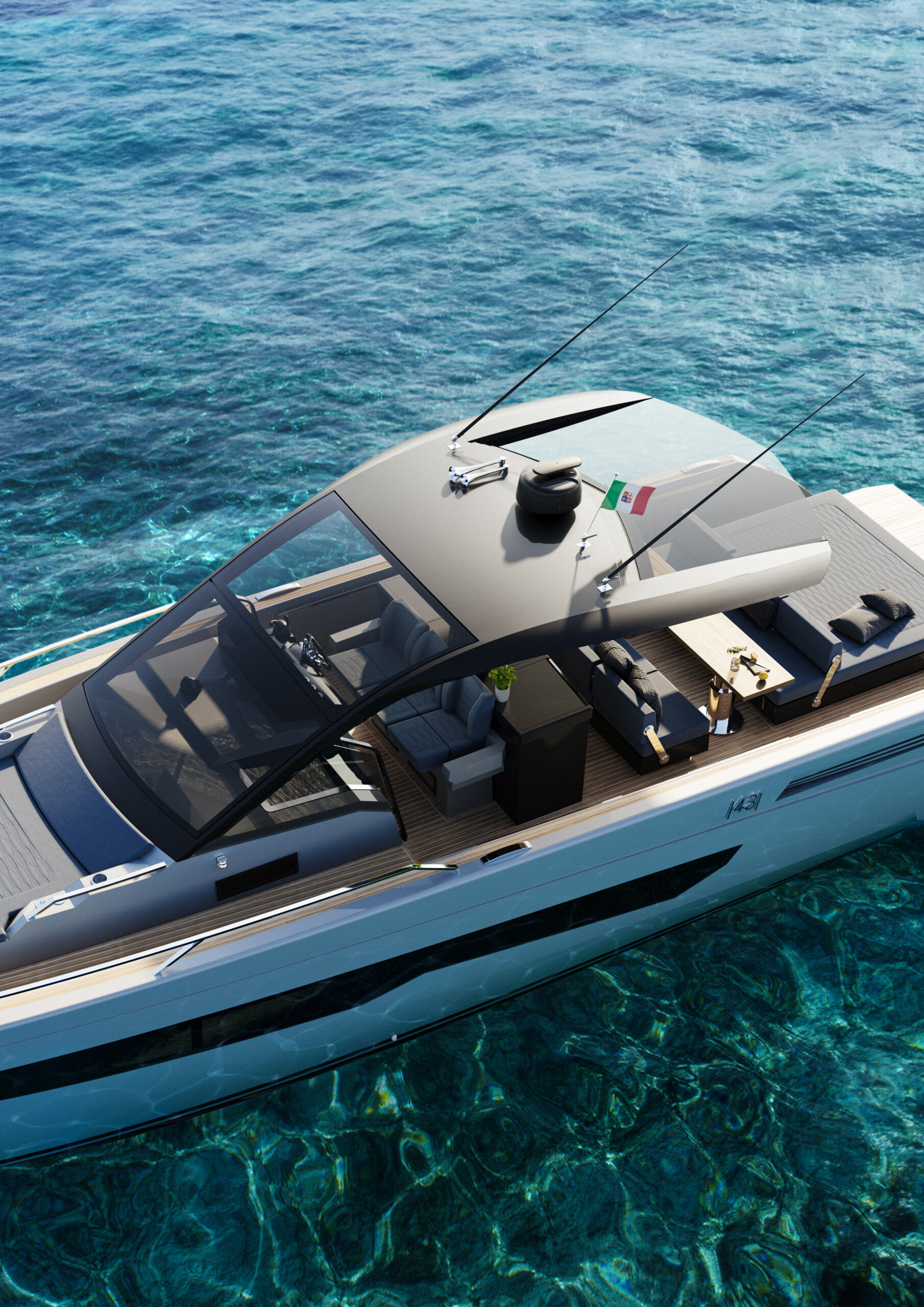 La Panorama Seawalker 43 conserva todas las ventajas características de los walkaround deportivos de Fiart, pero innova en la cubierta, para volverse aún más cómoda y utilizable para viajes largos. Destaca el parabrisas delantero de vidrio nuevo y grande que garantiza la aerodinámica y la visibilidad, el protector hard top, los pasavantes laterales más anchos y la cocina externa más grande.